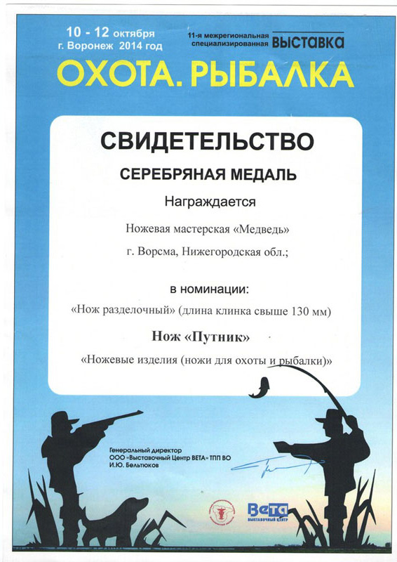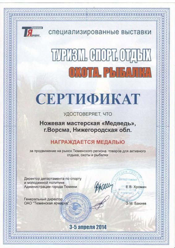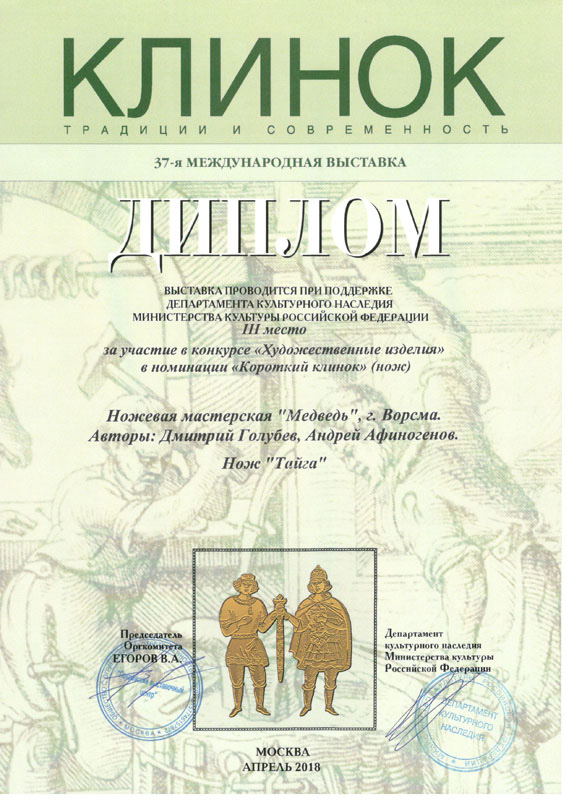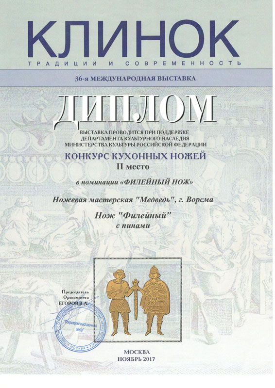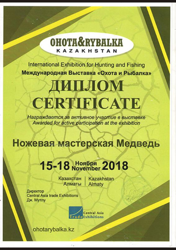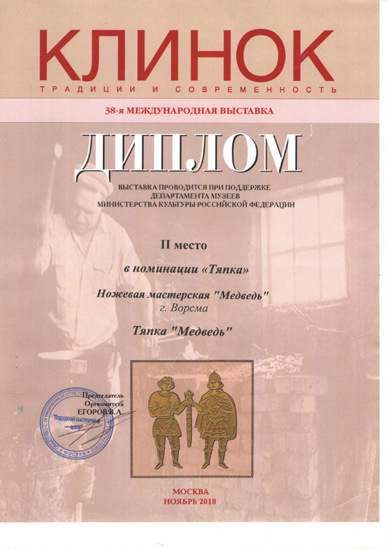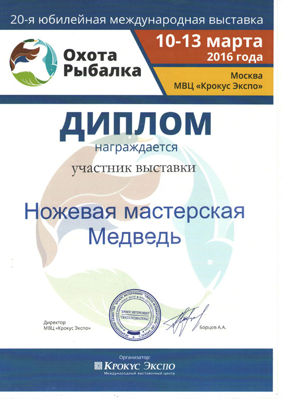 Мы по праву гордимся своим местом среди лидеров ножевой отрасли России – многочисленные награды и дипломы с профессиональных выставок и отзывы наших клиентов лучше любых слов говорят о качестве нашей продукции. Особенность производства – полный цикл: от идеи и первоначального эскиза до готового изделия в руки покупателя. Всё делаем сами лично, с вниманием к каждой деталию.