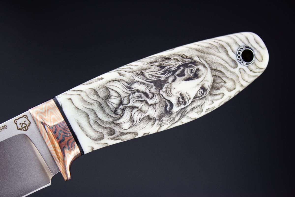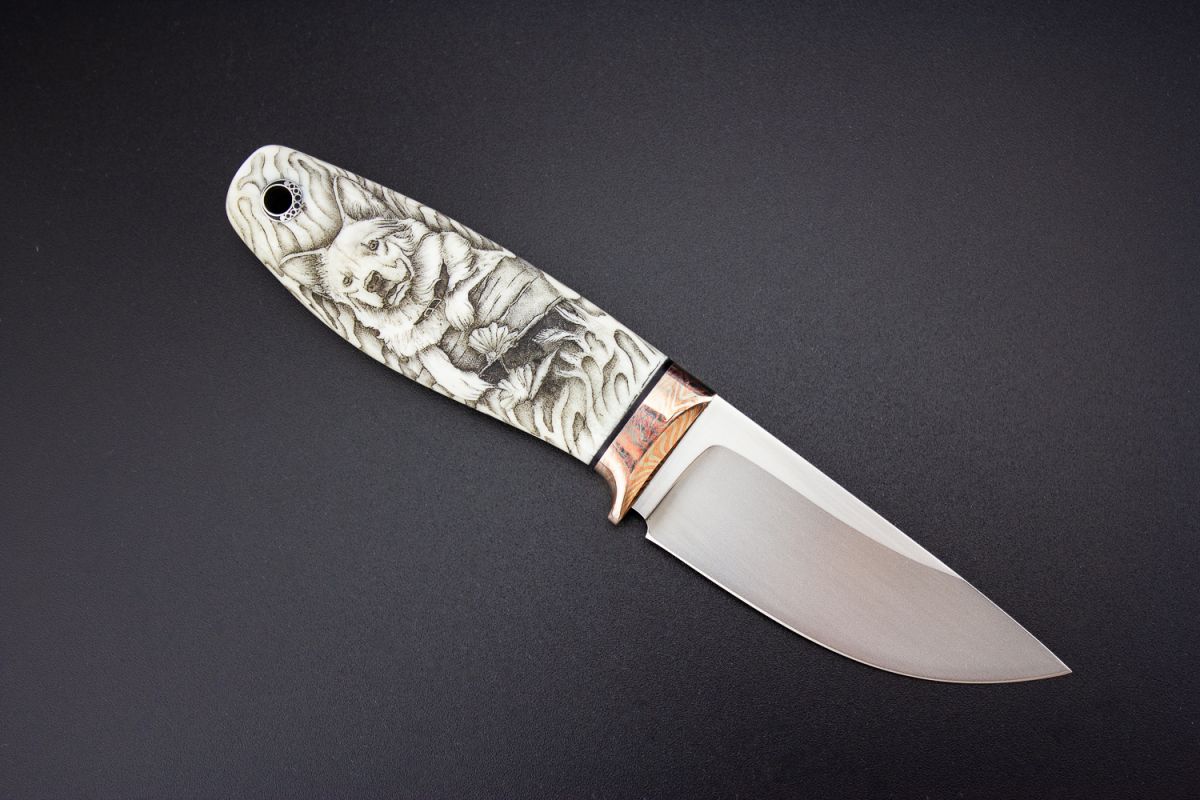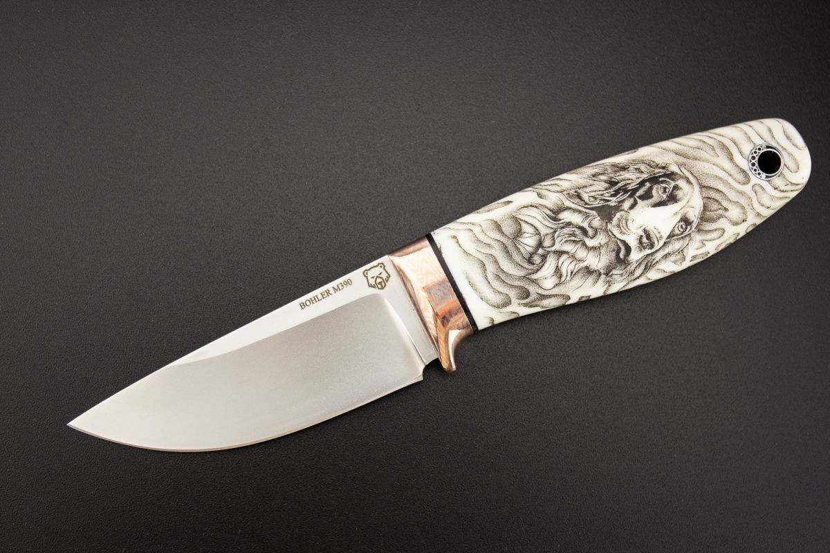 Нож шейный "Спаниель" (М390, клык моржа, макумэ-ганэ) скрим-шоу
