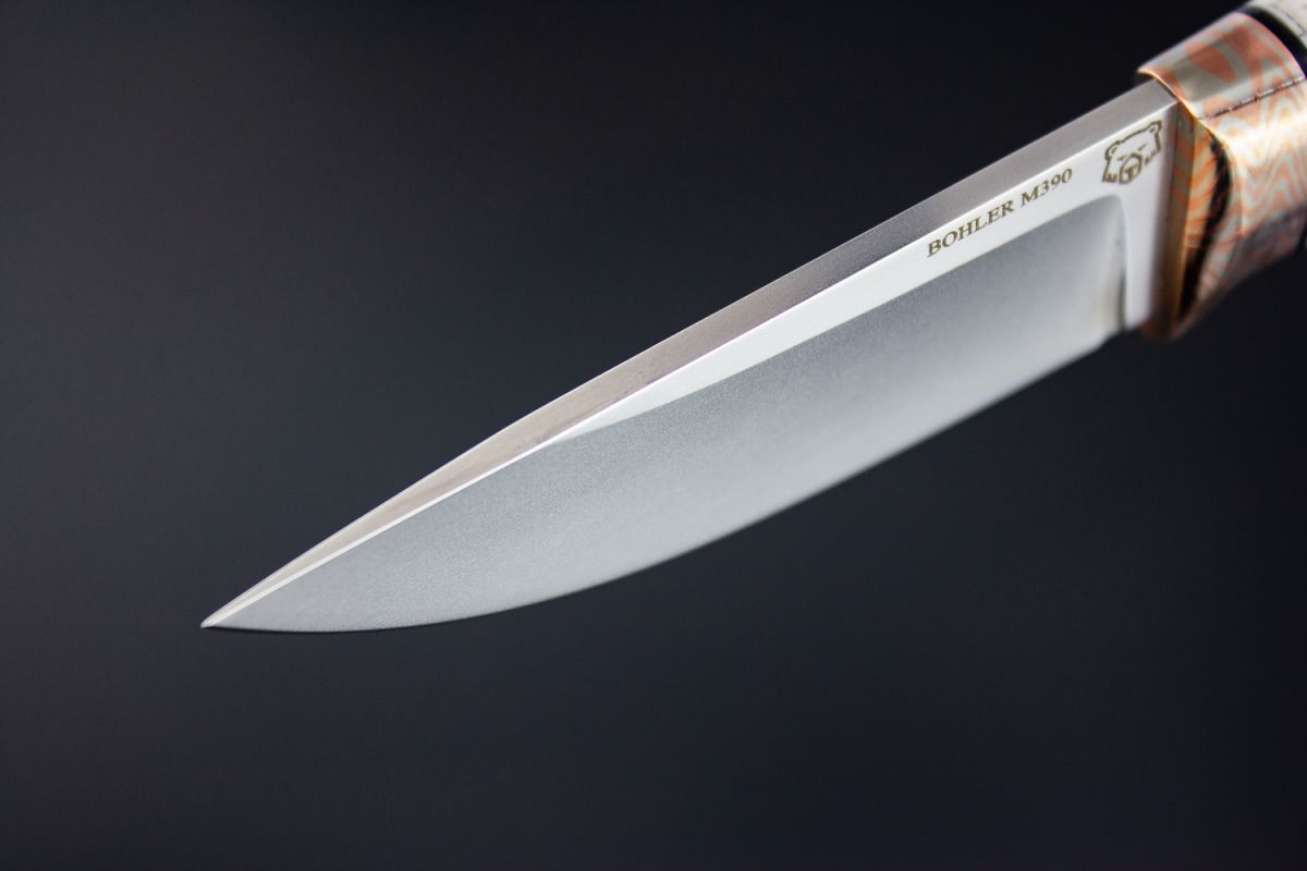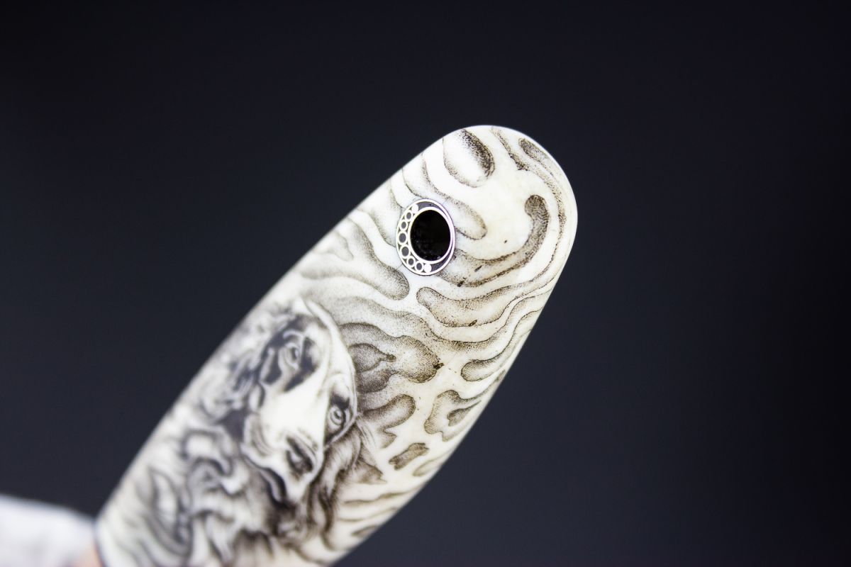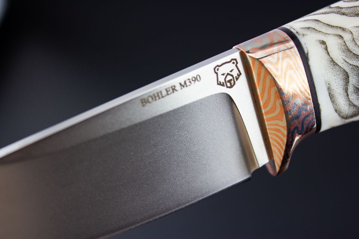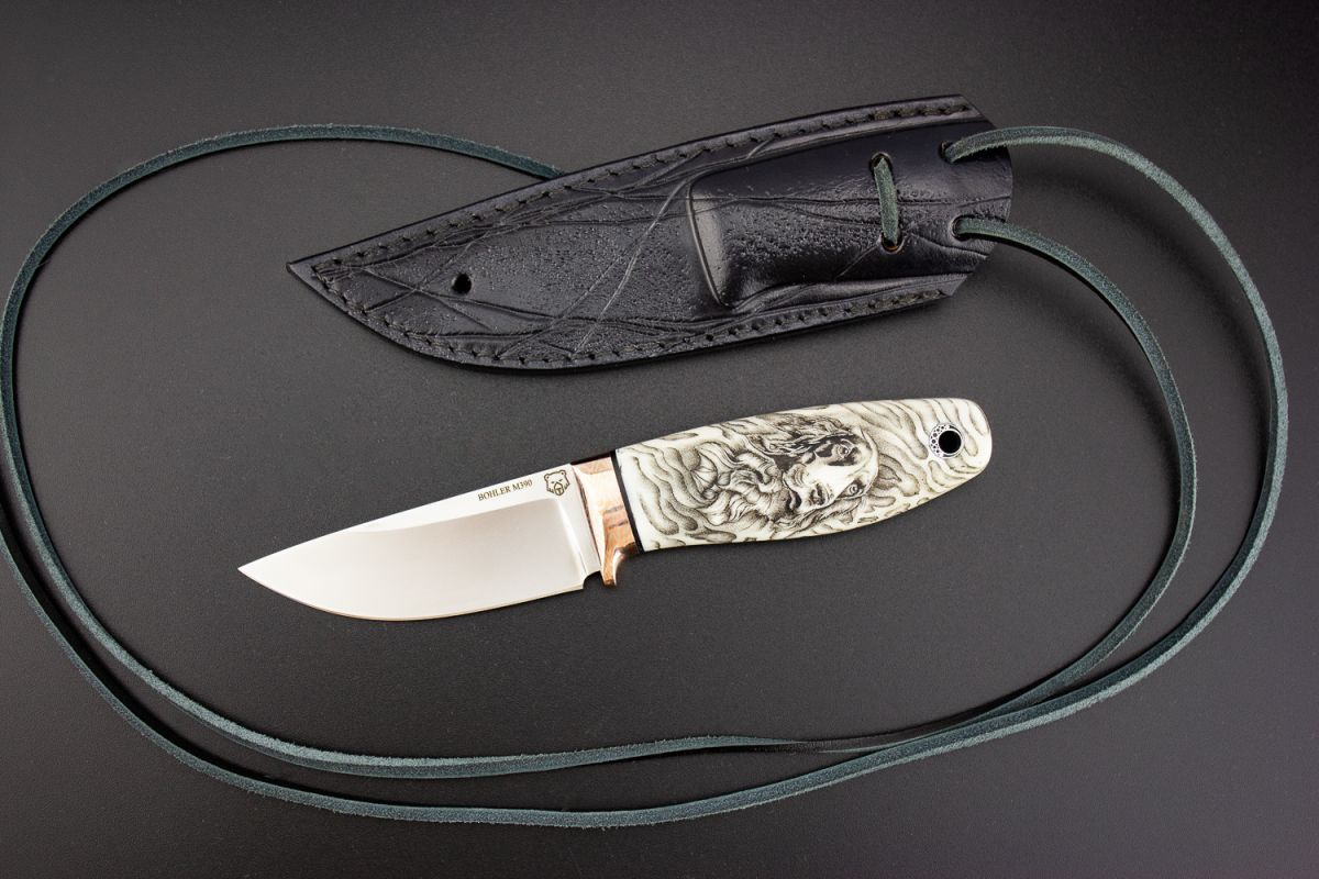 Нож шейный "Спаниель" (М390, клык моржа, макумэ-ганэ) скрим-шоу