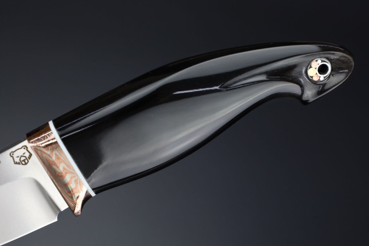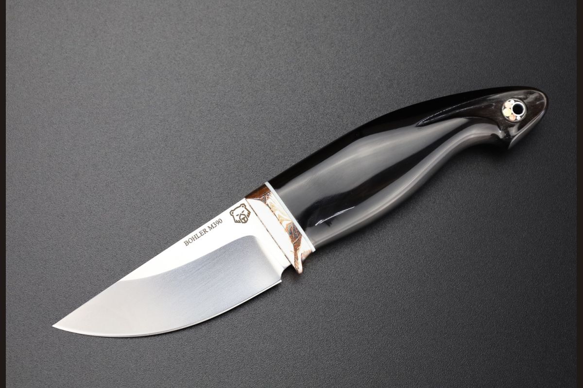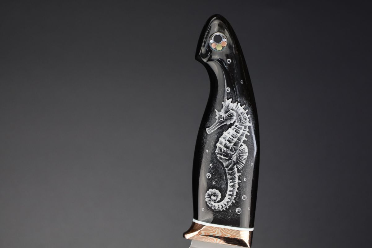 Нож шейный "Морской конёк" (Bohler M390, рог индийского буйвола, макумэ-ганэ) скримшоу