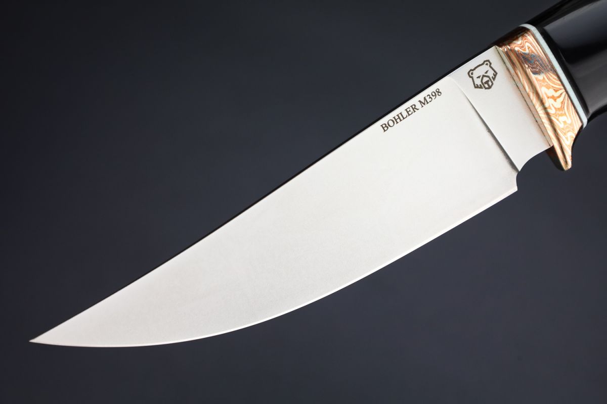 Нож шейный "Панда" (Bohler M398, рог индийского буйвола, макумэ-ганэ) скримшоу